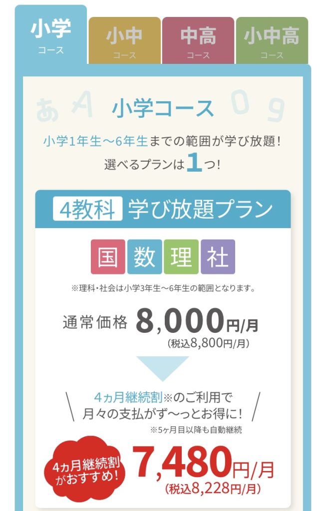 小中高 コース2プランがあります